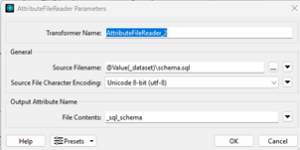 - AttributeFileReader lukee tiedoston attribuuttiin — tässä ”schema.sql”-tiedoston.