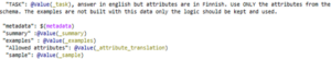 - Format määrittelee halutun jäsennellyn ulostulon. Koska prosessin on toimittava mille tahansa kysymykselle, vastauksen on aina noudatettava määriteltyä rakennetta, jotta voimme jatkaa prosessia.